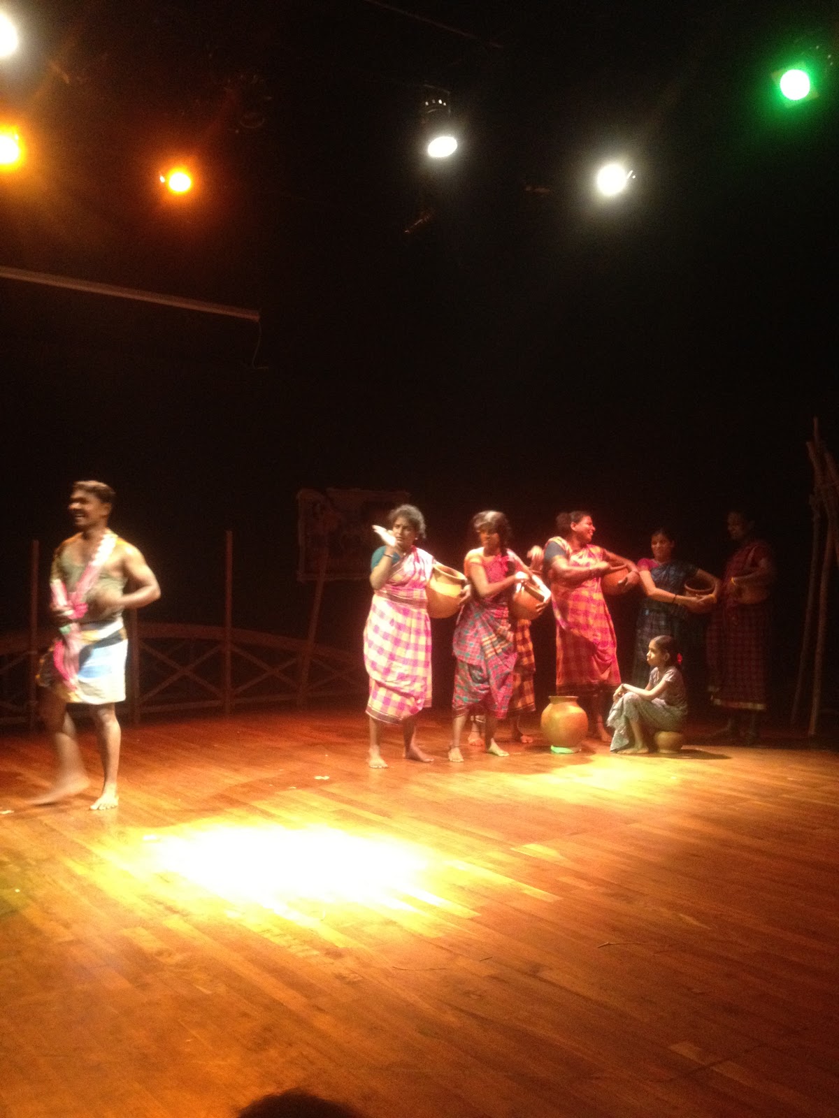 Though the lighting and music are good the play in total failed to make any impact because of the weak storyline . It is a stereotypical story. The Director of the play said that Dr A . Mangai only chose it. I wonder what induced her to do that. Because the portrayal of both Gengamma and Pachaiyamma are very naive and have no grain of feministic or Dalit perspective . It failed to interrogate why a woman like Gengamma behaves like that. The play reproduces the common sense notion and link the economic independence of a woman With abnormality and cruelty.